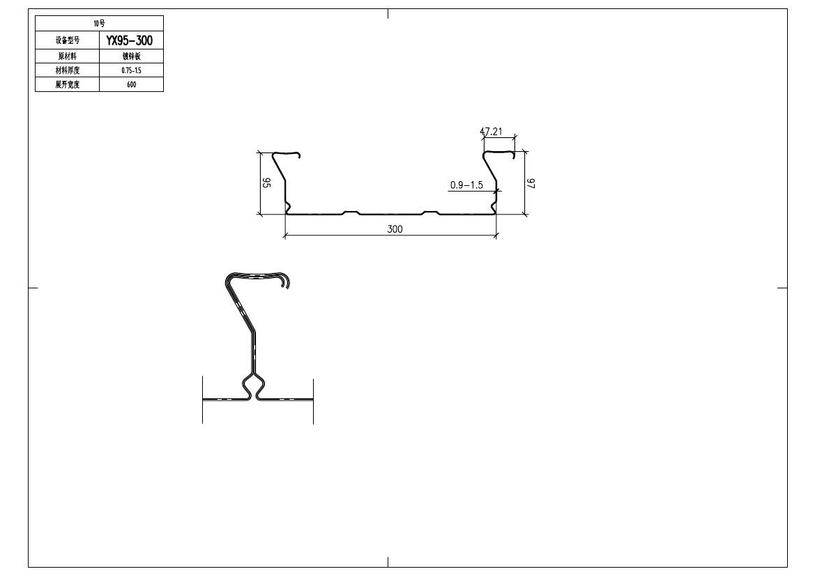 YX95-300闭口楼承板,也叫压型钢板、钢承板、钢楼承板,是采用镀锌钢板经辊压冷弯成型,其截面成V型、U型、梯形或类似这几种形状的波形,主要用作性模板,也可被选为其他用途。